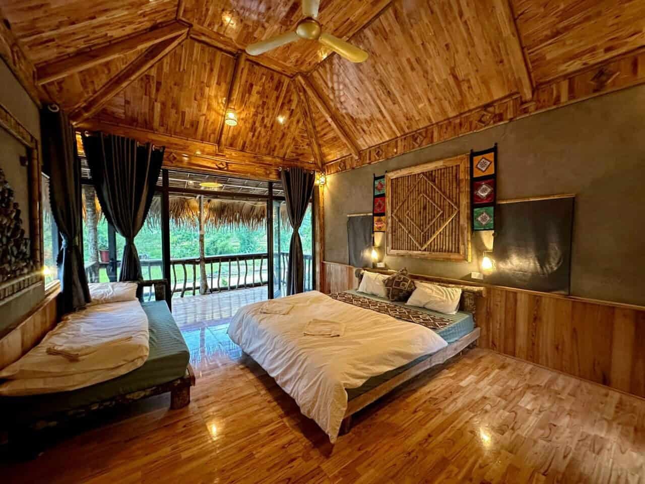 11h00 Arrivée à Mai Hich et accueil chaleureux des villageoises en tenues traditionnelles avec de l'eau rafraîchissante et des serviettes froides au Homestay Minh Tho.