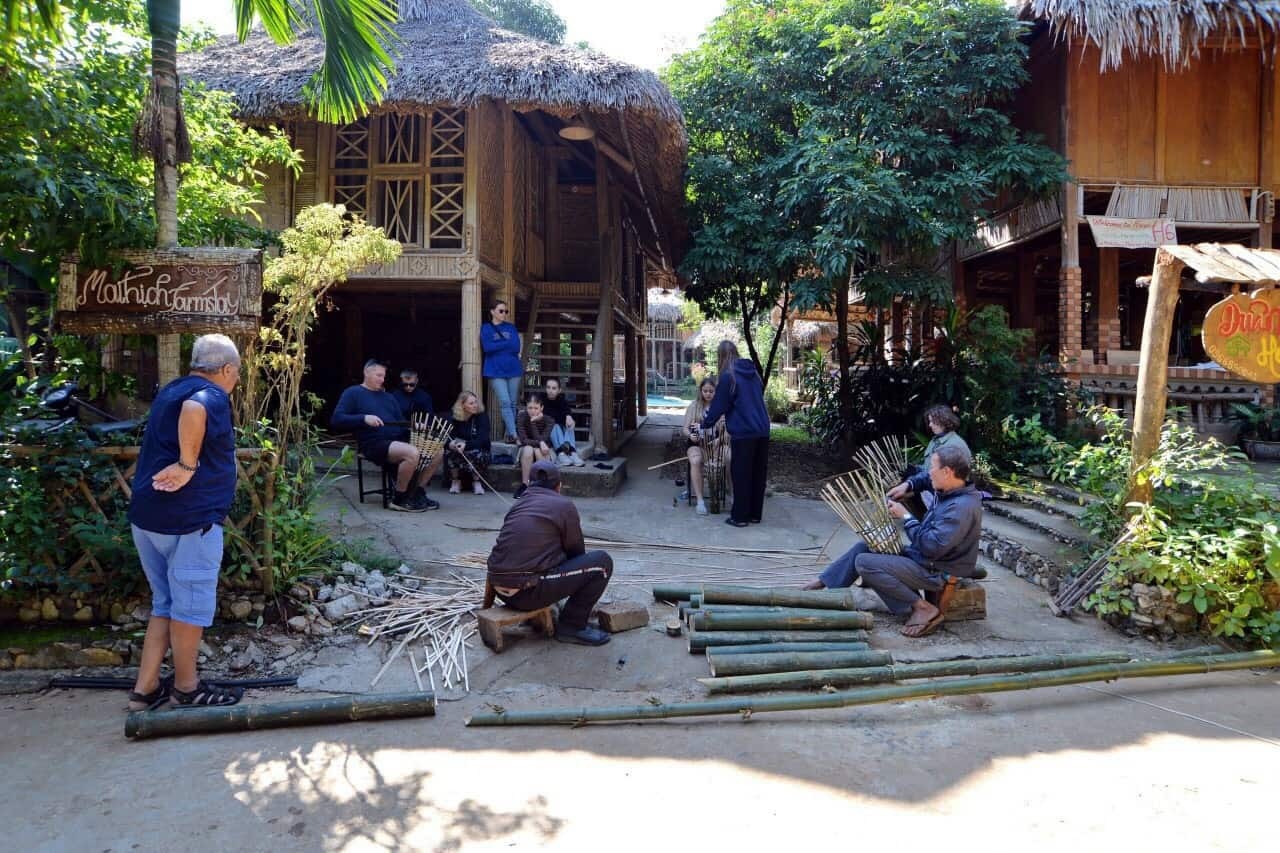 18h30 Dîner avec une touche de culture nationale grâce à la musique et aux danses des garçons et des filles thaïlandais. Vous pourrez vous joindre aux artistes paysans pour danser sur les perches de bambou, danser autour du feu de camp et savourer la chaleur humaine autour d'un vin de riz gluant.